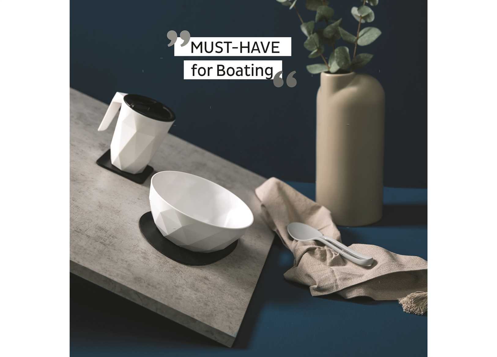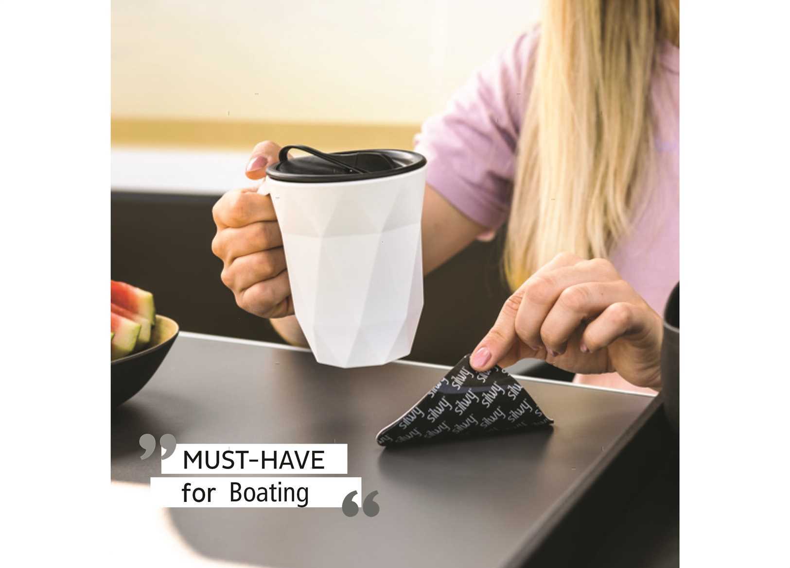 Tazza con manico dal design moderno in plastica infrangibile Hightech di altissima qualità. Dotata di coperchio con tappo, magnete integrato sul fondo e sottobicchiere metallico in nano-gel rimovibile, che non lascia residui e aderisce a tutte le superfici. Perfettamente impilabile per una soluzione salvaspazio ottimale.