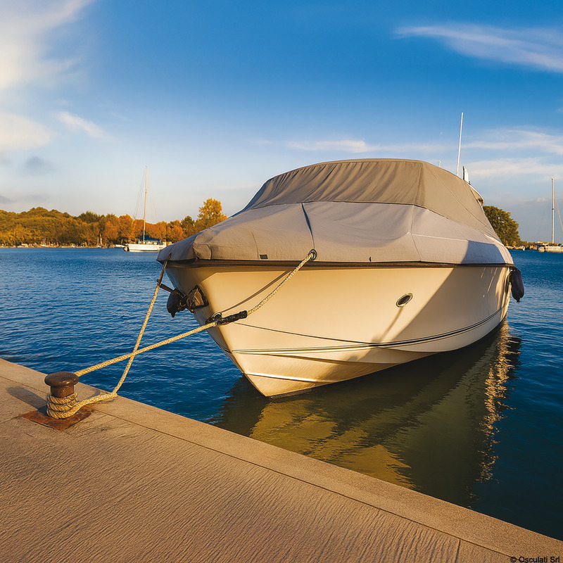Fabbricati in tessuto di poliestere con rivestimento impermeabile in poliuretano, elastico perimetrale per una migliore aderenza alle murate della barca. UV resistente. Cuciture doppie, anelli perimetrali per mettere in tensione il telone.