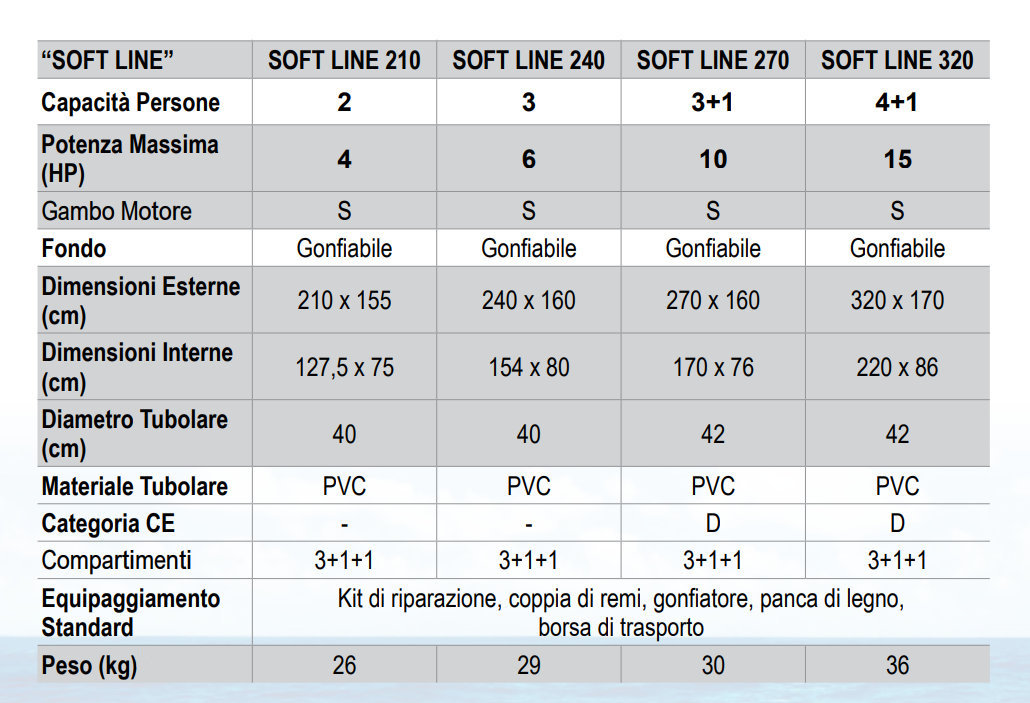 I Soft Line sono inoltre significativamente più leggeri rispetto ai concorrenti delle stesse dimensioni e pratici da maneggiare. Facili da guidare anche nel mare più mosso, garantiscono eccellenti prestazioni di navigazione.