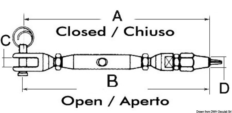 Tenditore in Acciaio Inox con due Forcelle Fisse