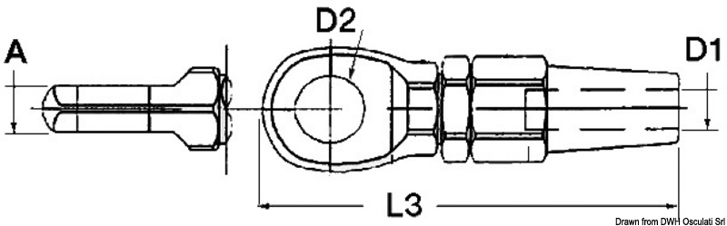 Utilizzabile con cavi in acciaio inox AISI316 da 19/49/133 fili.