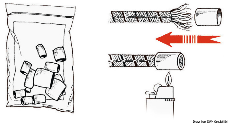 Serie di 14 pezzi. Uso rapidissimo e di ottimo effetto. I terminali possono anche essere usati come mezzo di segnalazione lungo le cime di ancoraggio o le scotte come punto di riferimento.