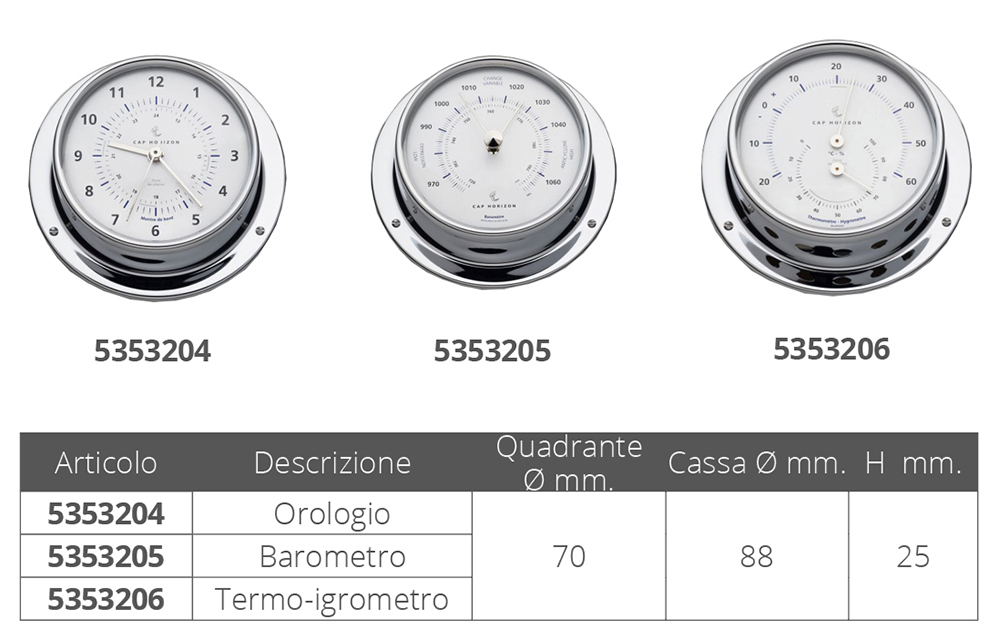 Strumenti di bordo in ottone cromato, quadrante Ø mm. 70, Ø cassa mm. 88 x 25 h