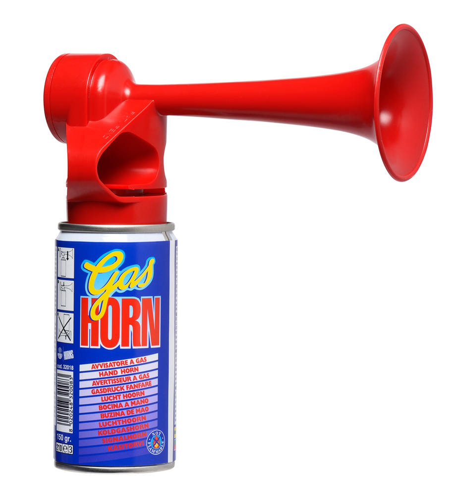 Avvisatore acustico a gas per segnali sonori. Bomboletta in legaleggera anodizzata, cornetto in ABS con innesto a pressione.Prodotto non infiammabile