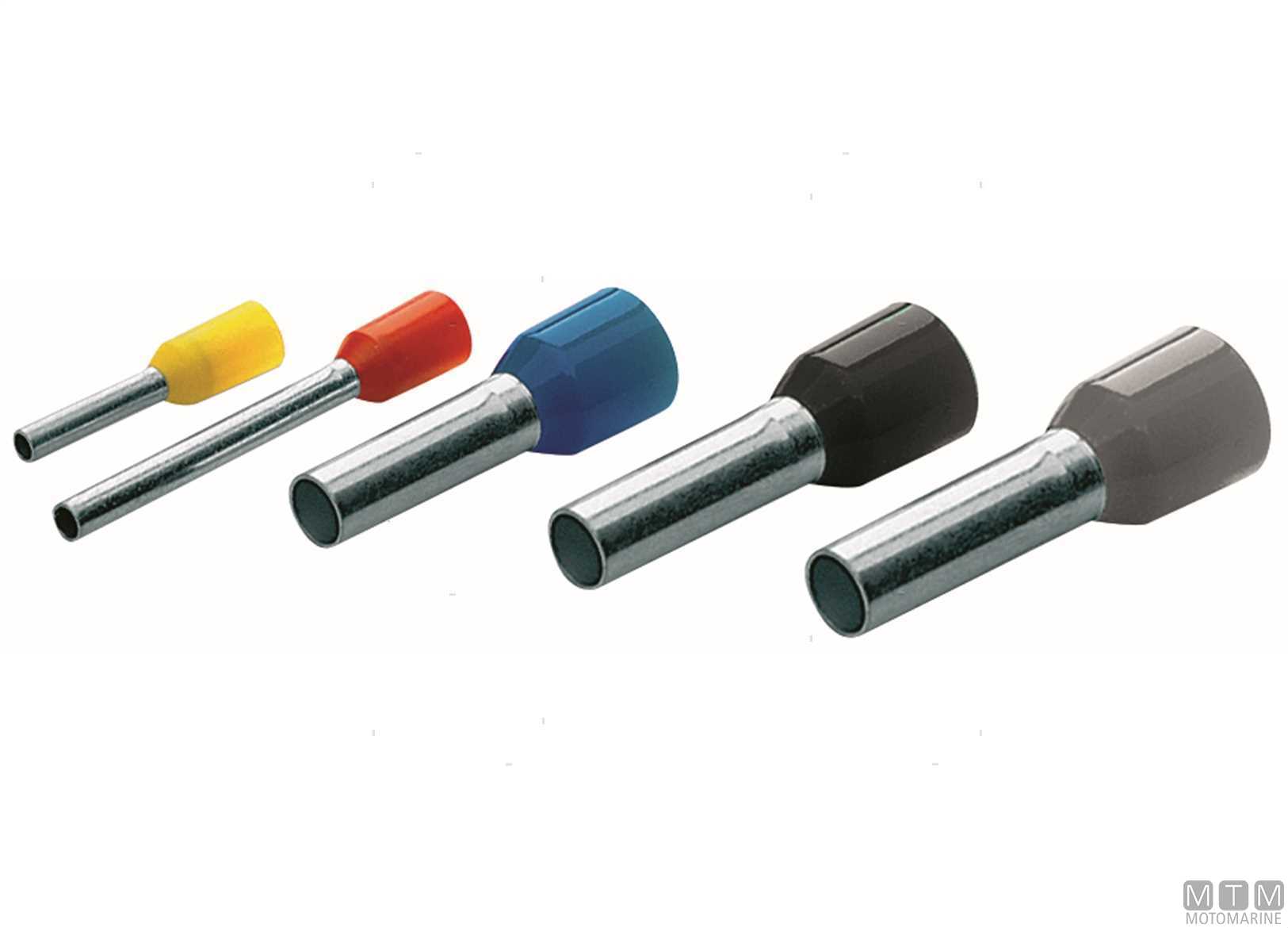 Tubetti terminali preisolati in PA6 ad introduzione facilitata per cavi in Rame. Stagnatura elettrolitica, anticorrosione, privi di alogeni. Dimensioni ridotte per morsetti con spazio limitato.