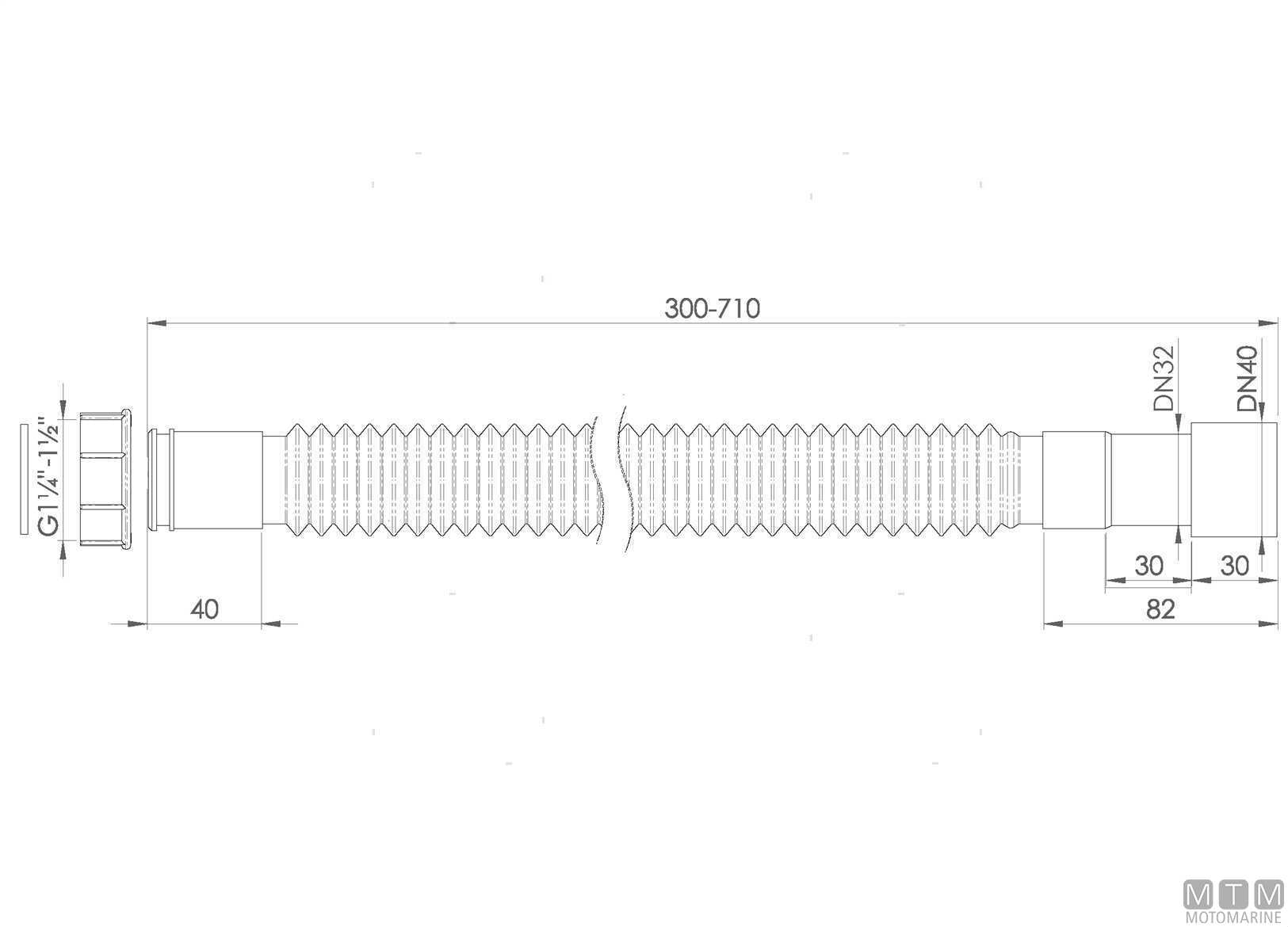 Tubo di scarico estensibile con ghiera filettata e uscita modificabile 32/40 mm.
