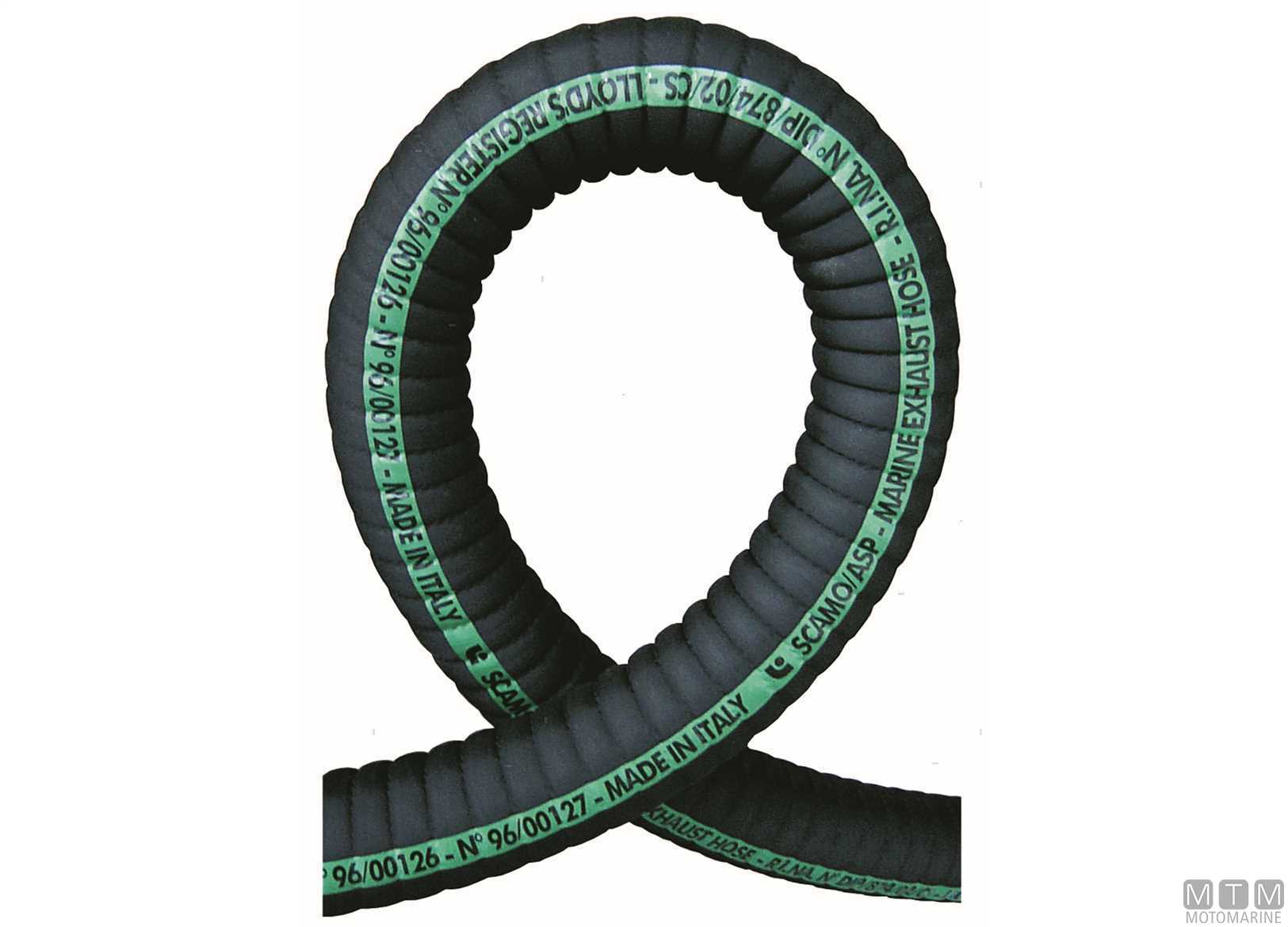 Tubo scarico in Gomma flessibile ondulato con spirale in Acciaio. Per acqua di raffreddamento e gas di scarico motore fino a 100°C. ↵Normative di riferimento: SAE J 2006:2003 R2-ISO 13363:2004-Tipo 2 Classe B. ↵Omologazioni: LLOYD'S REGISTER N.96/00127 - R.I.Na. N.DIP 075110CS.