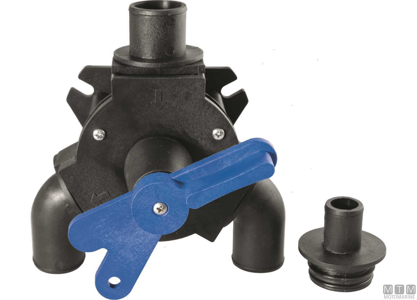 Valvola di scarico a 3 vie con possibilità di comando a distanza con cavo. Permette lo scarico del WC in mare o nel serbatoio acque nere.