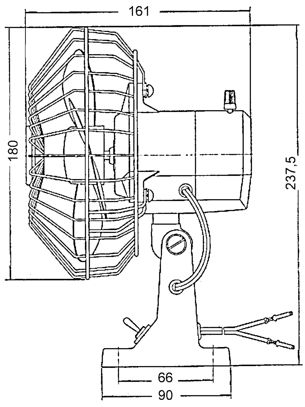 Ventilatore oscillante in ABS, conprotezione per le pale rotanti Ø mm. 150. Orientabile in tutte le posizioni, dim. base mm.66x90, h totale mm. 237,5, larghezza mm. 161, diametro corpo ventilatore mm. 180