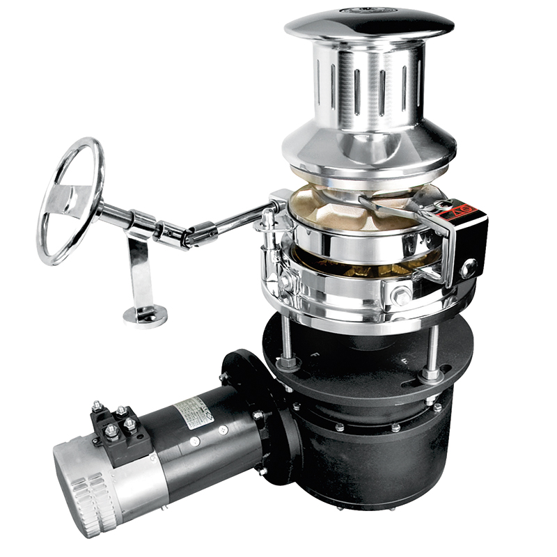 "Main features are: • Under-deck compact dimensions. • Construction in mirror polished AISI 316L stainless steel. • High torque latest generation electric motor able to provide the power needed in all marine conditions. • Band brake to assist in chain control, thanks to an easy-to-manage large hand-wheel. • Special high-grip drum with independent rotation from the Gypsy, for warping function. • Indepent Gypsy and drum operation • Manual chain release • Manual override to recover the chain and anchor in case of electrical failure. • Internal ratchet to prevent chain jams into the chain cocker which could damage the deck. • Chain counter support integrated by the sensor inserted in the base and the magnet in the Gypsy. • Available also in counter clockwise rotation. • High efficiency Lofrans planetary - worm screw gearbox made in anodized black aluminium with gears made in high mechanical strength material. • Heavy duty electric motor • Power: DC, AC and hydraulic • Available in custom versions. Please contact us for additional detailed documentation."