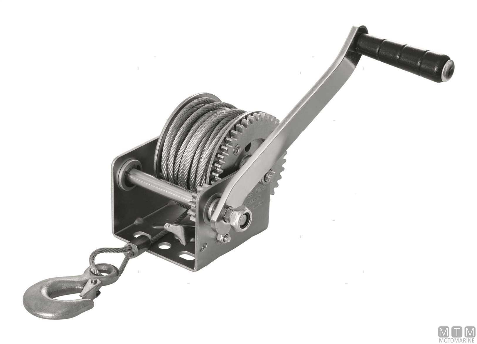 Verricello manuale certificato CE in Acciaio Zincato per alaggio imbarcazioni. Completo di cavo da 10 metri e gancio. Capacità Kg: peso limite che il verricello può sopportare su traino orizzontale con slittamento ottimale. Su traini inclinati si consiglia di non superare i due terzi del peso limite.