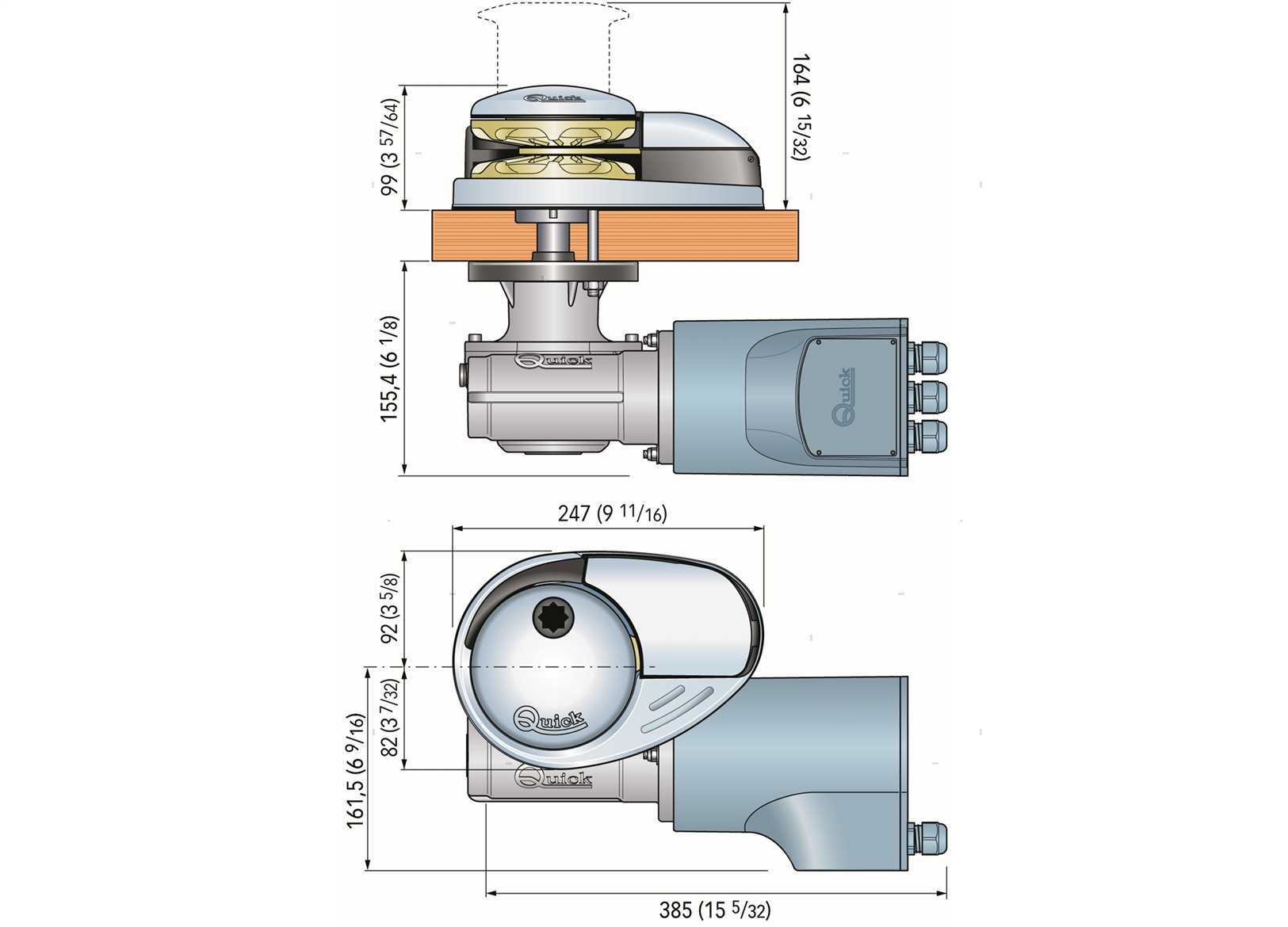 Verricello salpa ancora cima/catena Quick con organi di trazione in Bronzo e Acciaio Inox. Completo di sensore contametri e sistema manuale di caduta libera della catena. Sistema di recupero manuale d’emergenza e dispositivo tendicima. Testa e base in Acciaio Inox. Motore stagno IP67. Completo di control box e maniglia.↵(La D nella colonna Ref indica la presenza della Campana/Drum)
