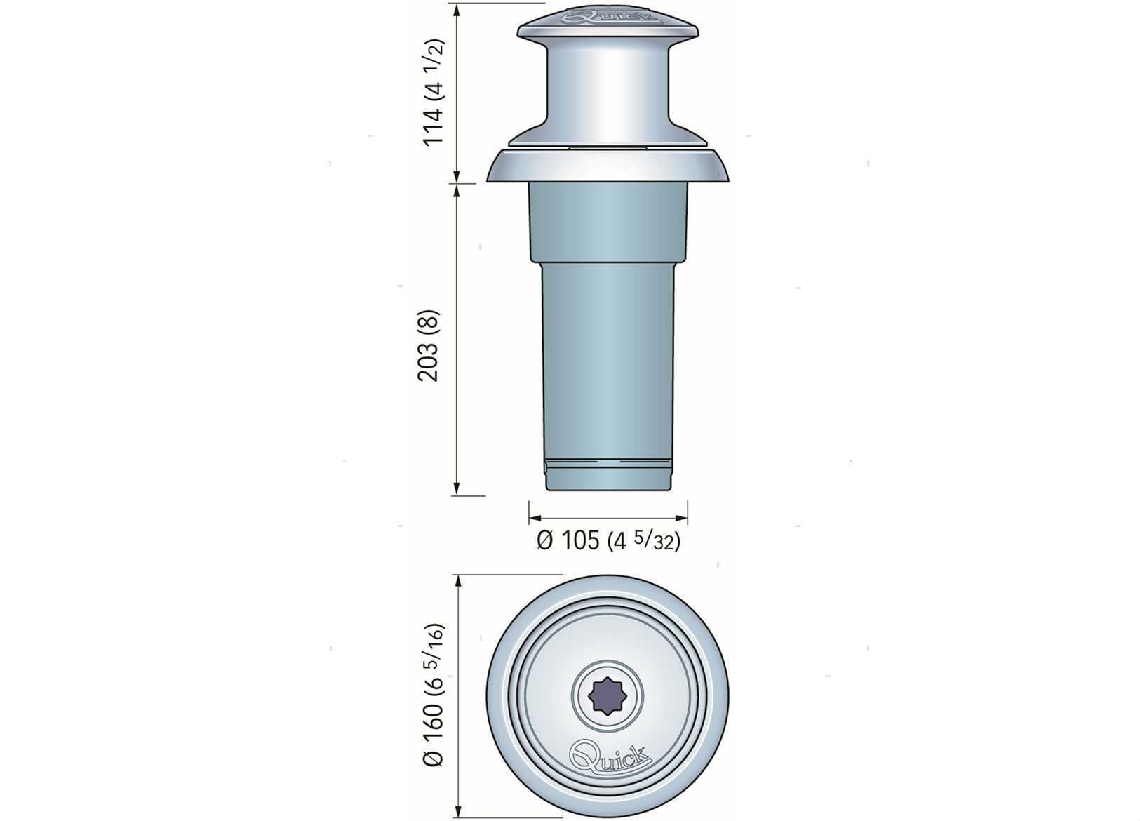 Verricelli da tonneggio Quick con base in Alluminio Anodizzato e campana in Bronzo Cromato. Motore verticale stagno IP67 molto facile da installare. Completo di control box e maniglia.