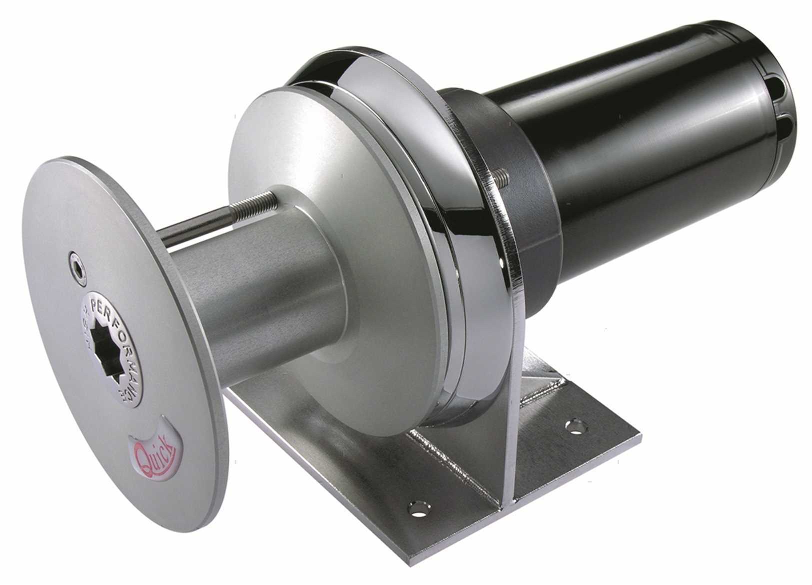 Verricelli da tonneggio Quick per tender da montare all'esterno senza incasso. Base in Bronzo Cromato e campana in Alluminio Anodizzato. Motore stagno IP67 con riduttore epicicloidale. Completo di control box e maniglia.