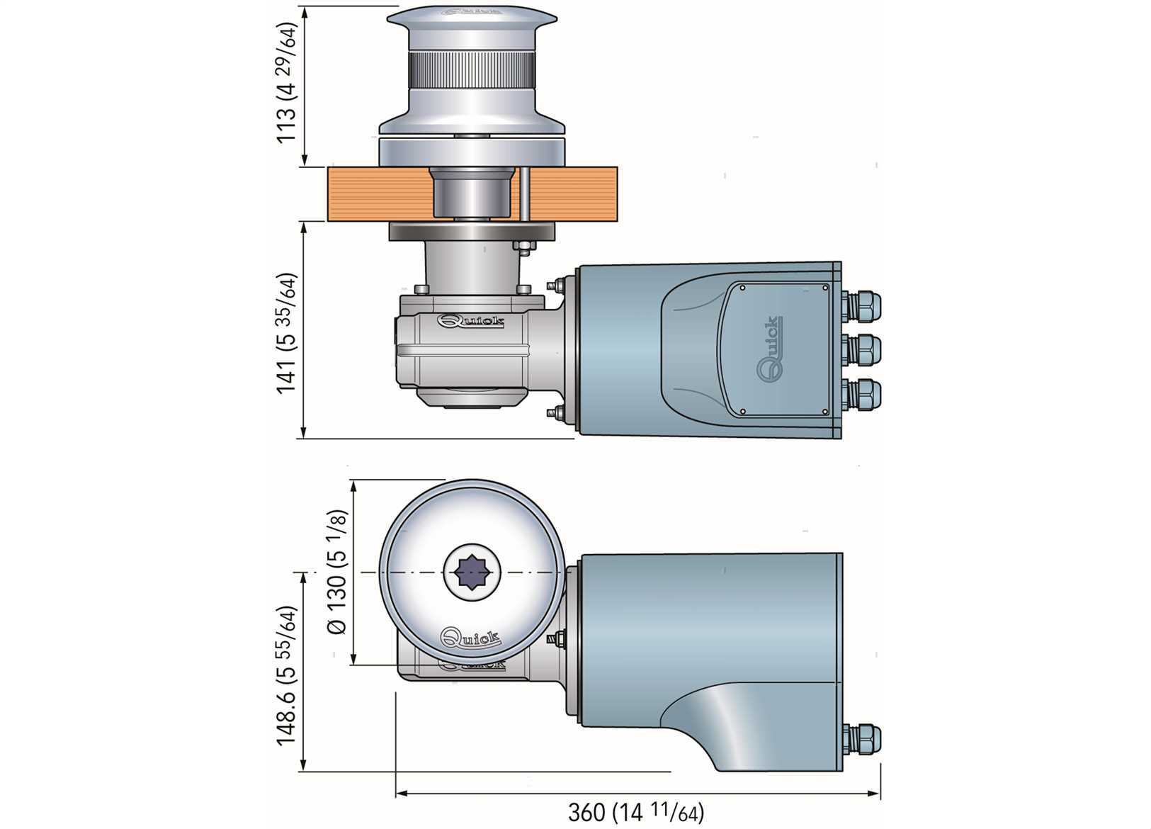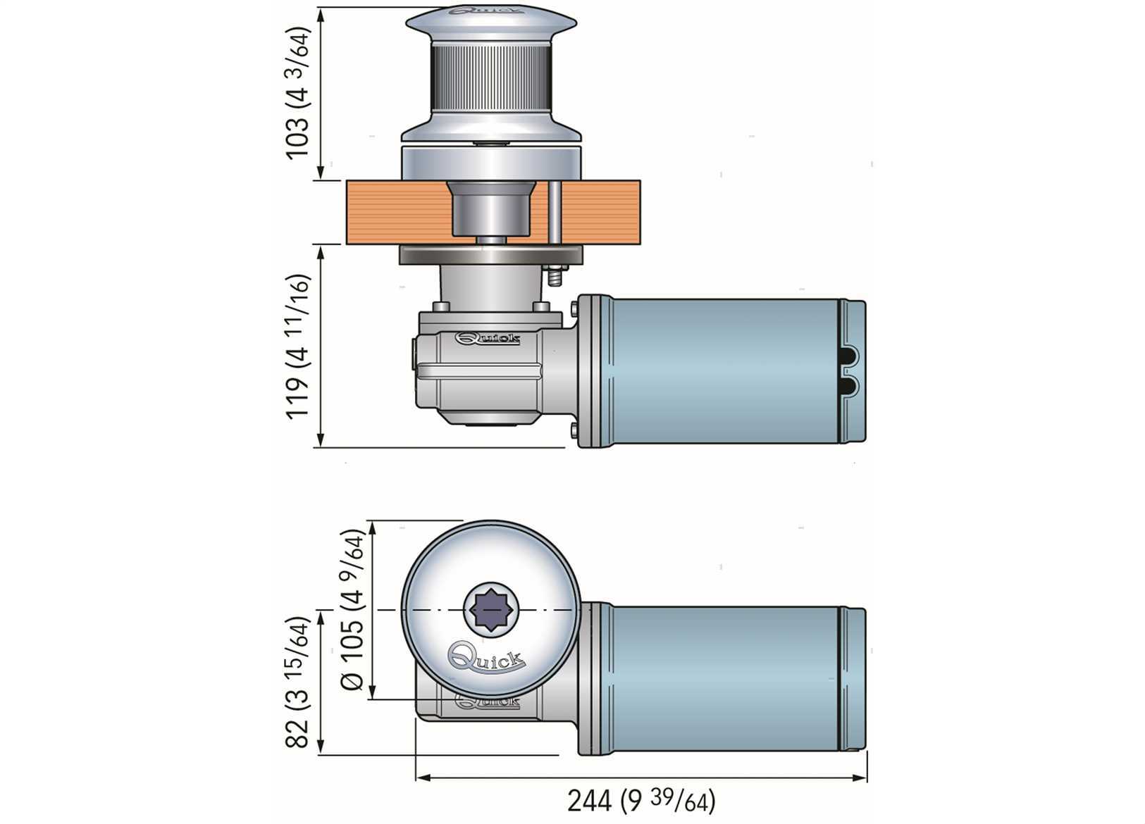 Verricelli da tonneggio Quick con base e campana in Acciaio Inox AISI 316. Motore stagno IP66. Completo di control box e maniglia. Per imbarcazioni da 6 a 13 metri.
