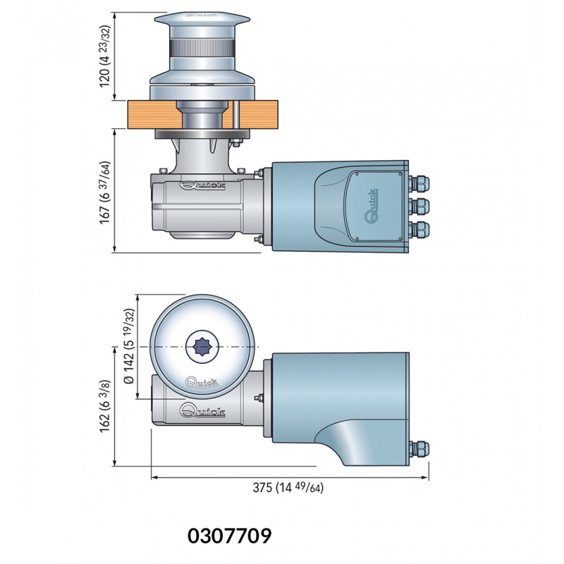 Verricelli da tonneggio, base e campana in acciaio inoxAisi 316, motore stagno IP67. Riduttore in alluminio anodizzato