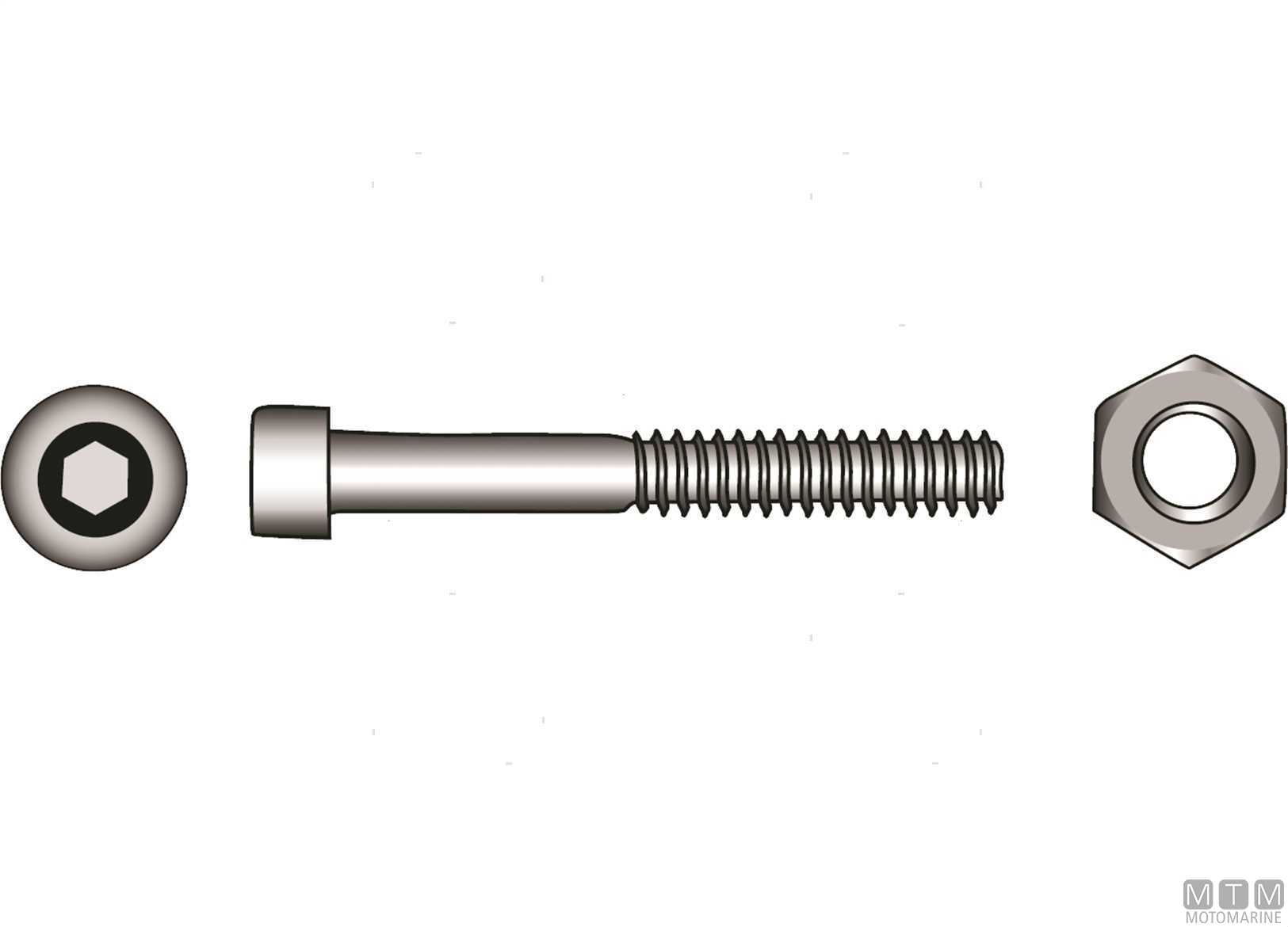 Viti testa cilindrica con cava esagonale DIN 912 in Acciaio Inox A4.↵Confezione in Blister completa di dadi.