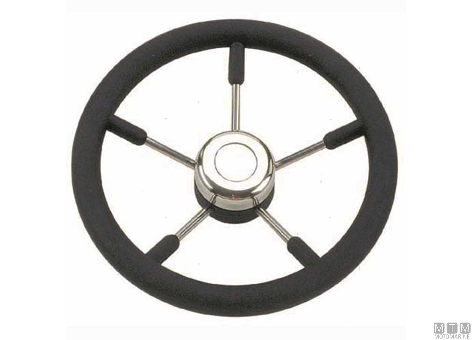 Volanti a 5 razze in Acciaio Inox con impugnatura in Poliuretano o in Mogano.