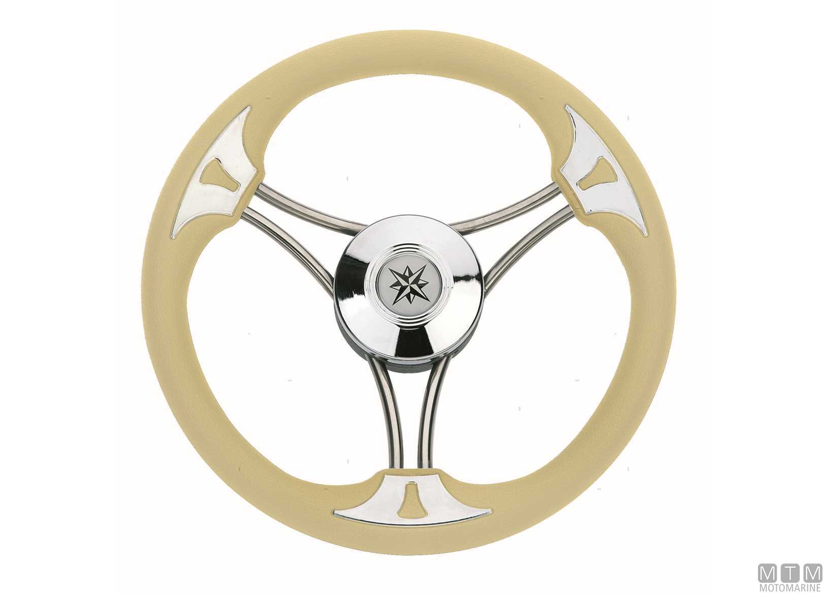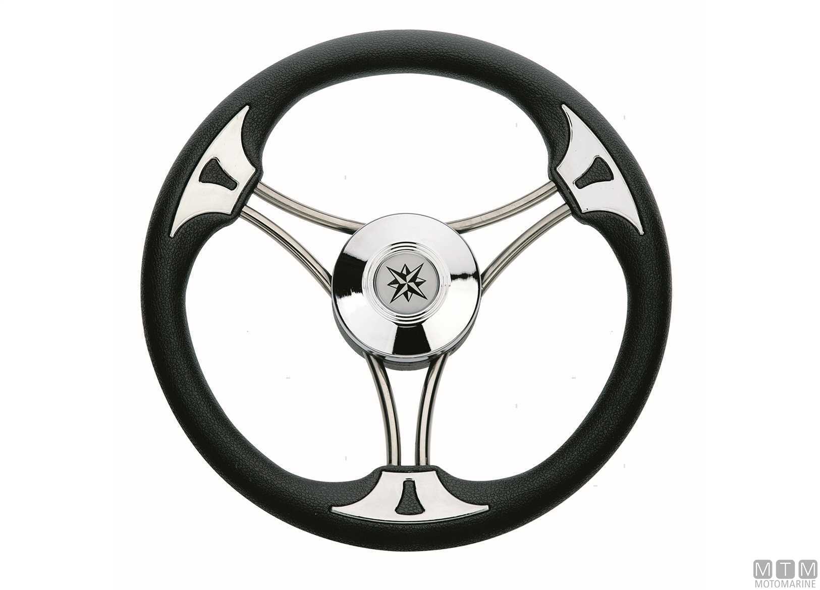Volanti a 3 razze in Acciaio Inox con impugnatura in Poliuretano o in Mogano. Inserti di finitura cromati.