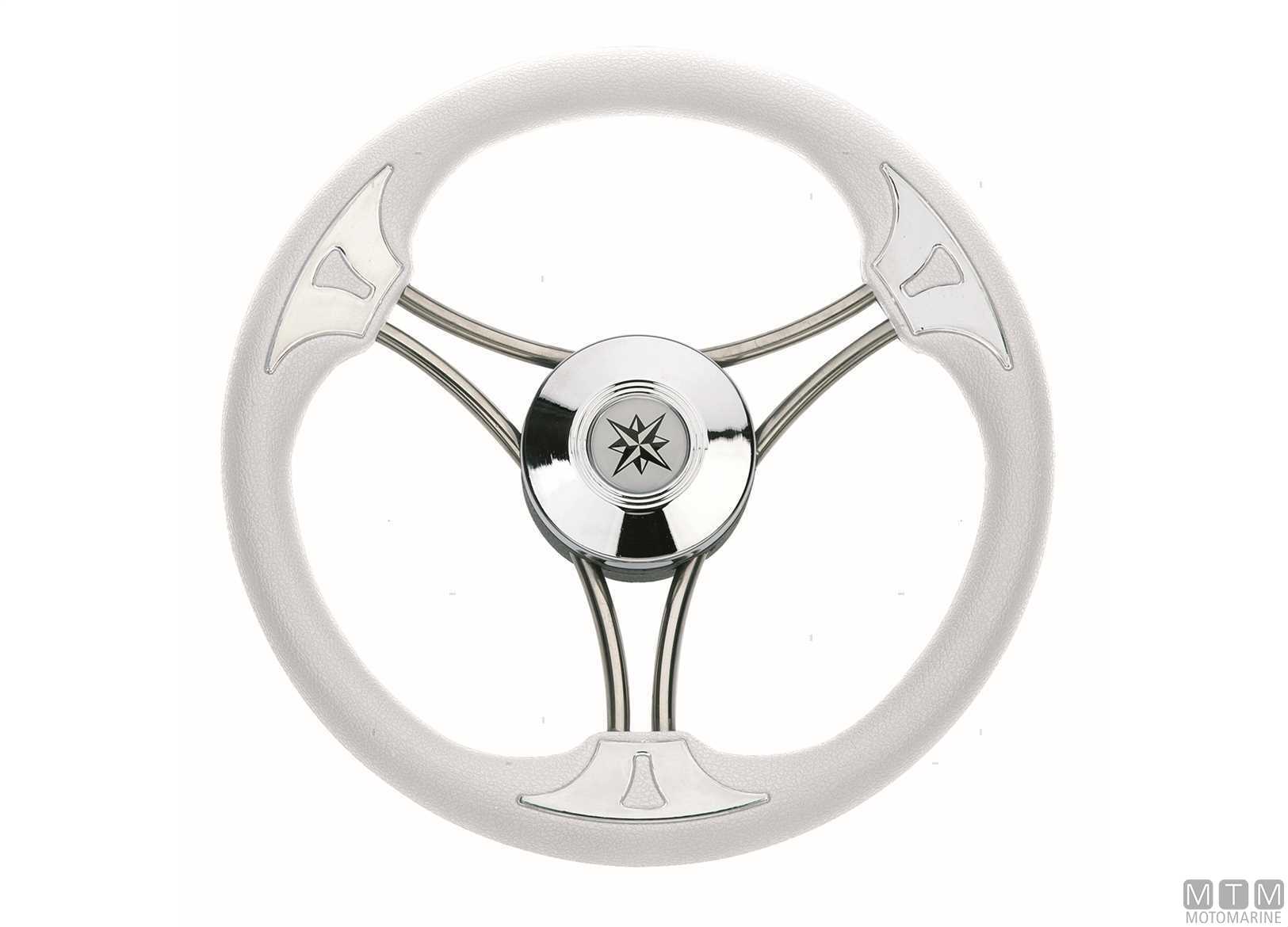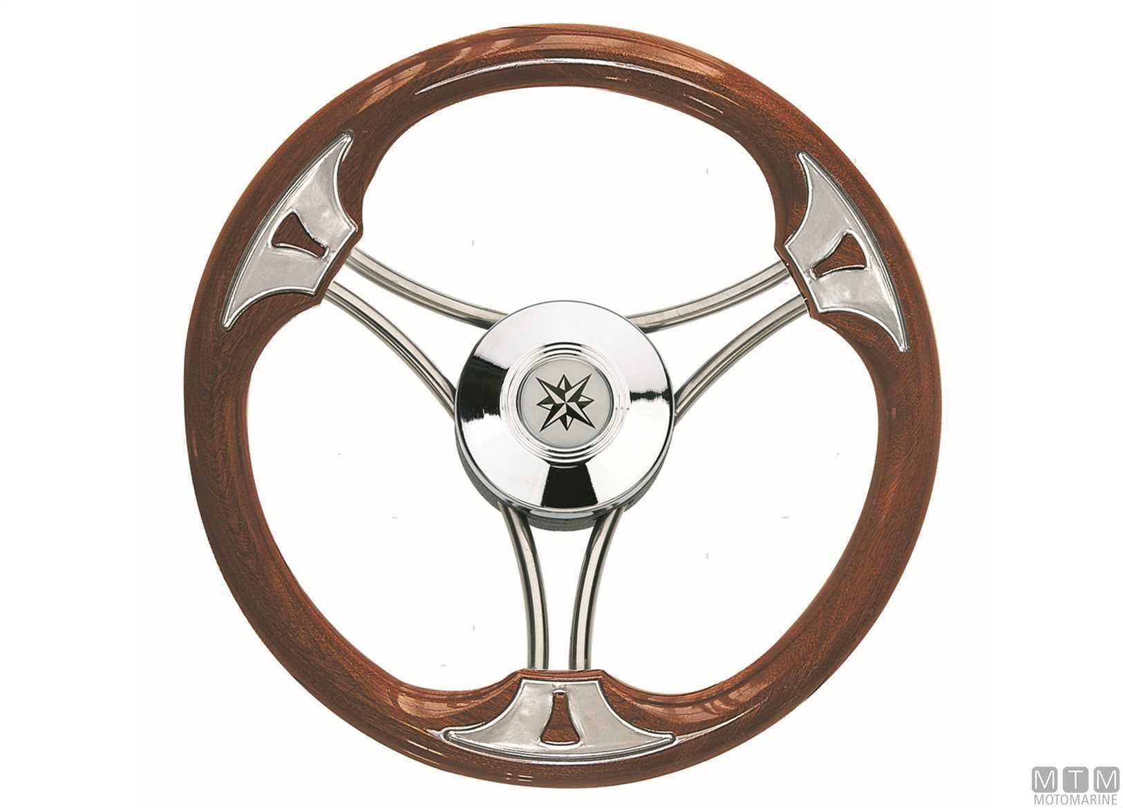 Volanti a 3 razze in Acciaio Inox con impugnatura in Poliuretano o in Mogano. Inserti di finitura cromati.