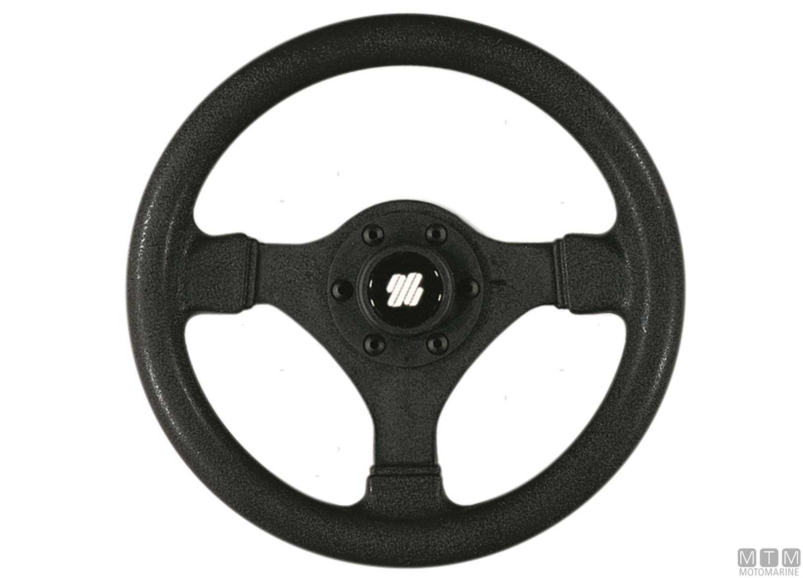 Volante compatto in materiale termoplastico composito antiurto. Certificato CE-ISO23411 e conforme ABYC. Completo di tappo centrale e mozzo con cono standard da 3/4".