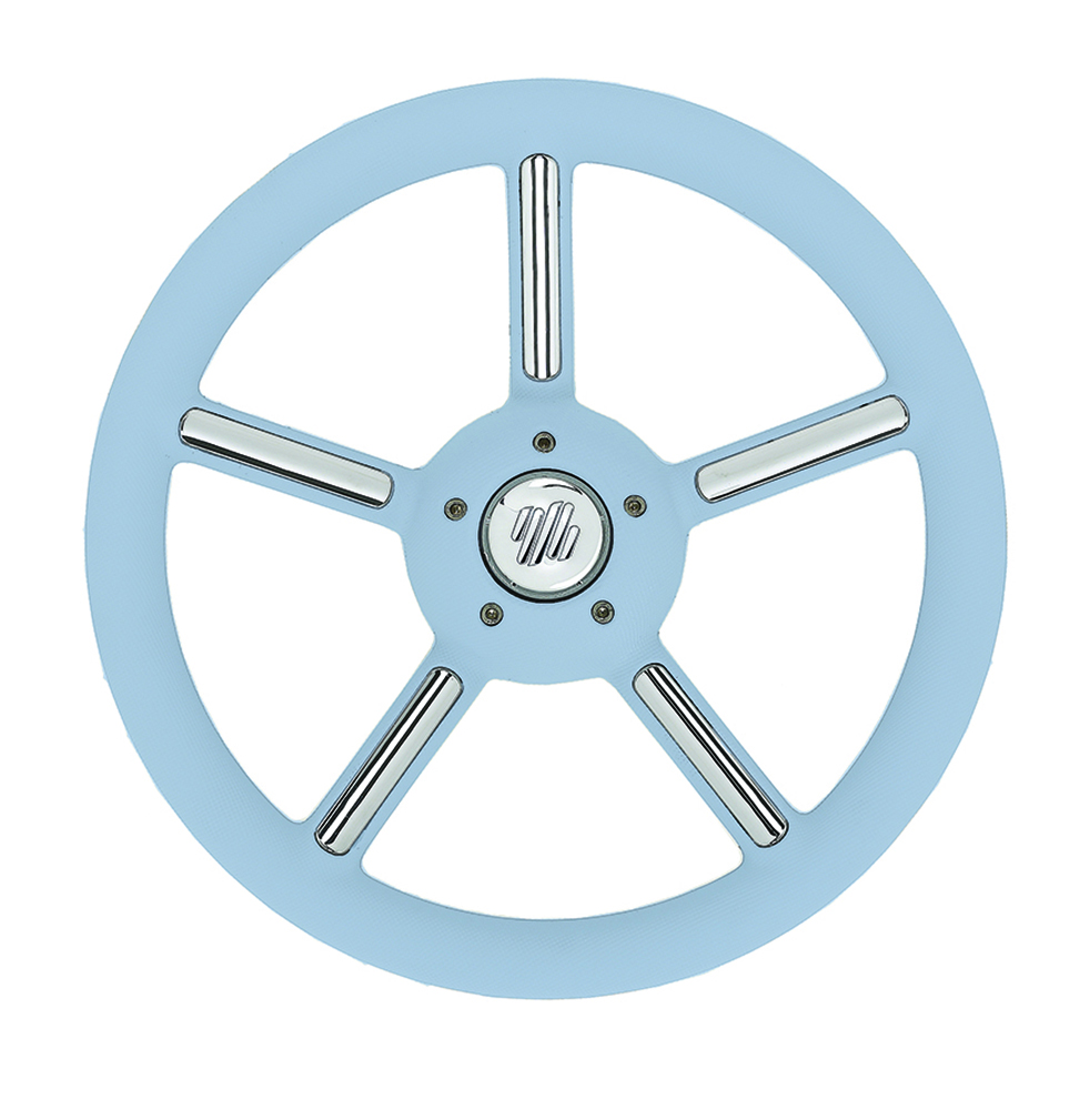 Volante V56a 5 razze con impugnatura in morbibo poliuretano e razze con insertiin acciaio inox