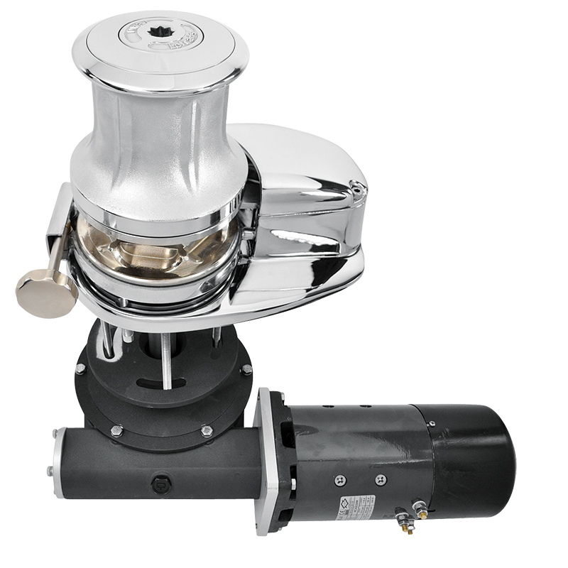 Verricello in bronzo cromato resistentealla corrosione marina.,consigliato per barche da 18 a 25 mt. Modello alto con barbotin e campana